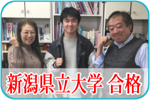 初めは英語も数学も基礎の基礎から、計算問題のイロハから取り組み、最後の最後で新潟県立大へ大逆転合格を決めてくれました!
